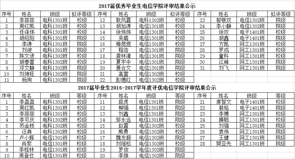 关于电子信息学院2017届优秀毕业生及2016—2017年度三好学生(优秀学生干部)评选结果的公示