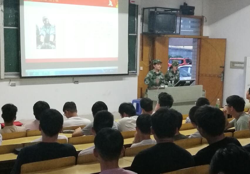 江俊新老师首先让大家观看了学校的征兵入伍的视频并强调了大学生从军的优势。接下来,两位退役学长用自己的经历为大家讲述了在部队的感触,两位学长提出,从军不仅能获得经济补助、强身健体,而且有助于养成良好的作息习惯,更重要的是对党的信念有所升华;而两位在役学姐则为大家介绍了诸如从军地域的区别、退役后回归校园的可能等一些从军事项,并为在场同学所提出的的从军问题做出回应。随后,武装宣传部的两位学长为大家宣传了当兵的好处、优惠政策、报名流程、部队的训练项目以及作息时间等。