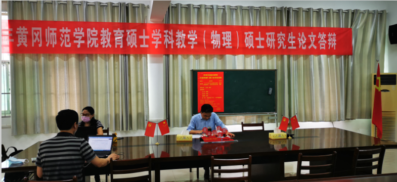 2020年5月28日下午,物理与电信学院采取线上线下相结合的方式,在物电楼205如期举行了2018级硕士研究生学位论文答辩会。我校学科教学(物理)专业首位研究生黄学涛(导师杨昌权教授)同学就课题“‘3+1+2’模式下高中生物理科目选择的影响因素研究——以黄冈市部分高中为例”进行了答辩。