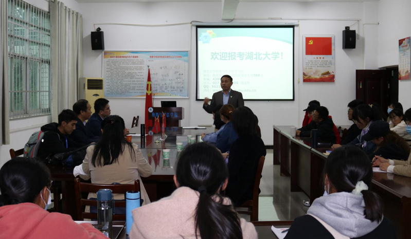 在讲座之后,丁益明主任和彭小牛副主任对我院大三、大四学子进行考研指导,详细介绍了湖北大学物理与电子科学星空官方网页版、师资条件、招生简章和奖助学金政策。