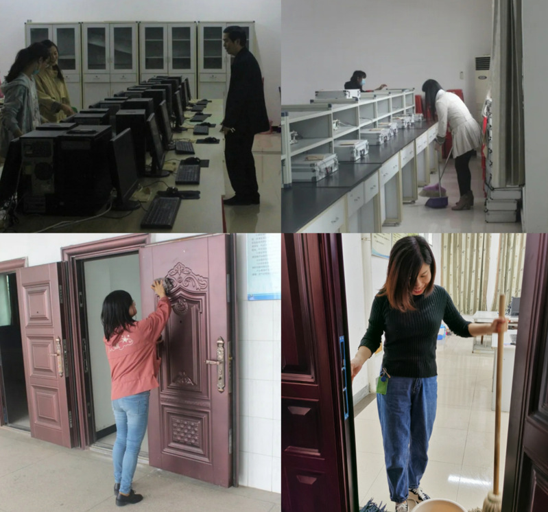 第四大组由徐火希院长负责,龚莎老师和才静滢老师分别带领由学生会成员组成的两个小队打扫五楼六楼的办公室、实验室、走廊及楼梯的卫生。