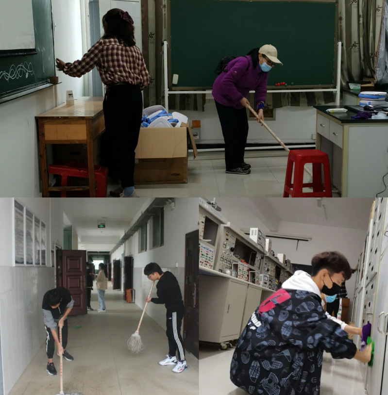 第三大组由丁如春院长负责,余洋老师带领由光电专业同学组成的两个小队打扫三楼四楼的办公室、实验室、走廊及楼梯的卫生。