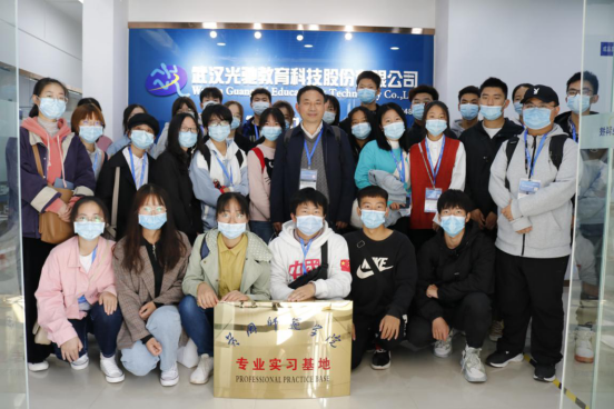 为开拓学院实习基地,实现学生实习实践内容与专业知识相结合,提升学生对本专业的认识,2020年11月6日,物电学院30名学生在兰智高教授和唐焱明老师的带领下,来到武汉光驰教育科技股份有限公司参观座谈,进行现场教学。