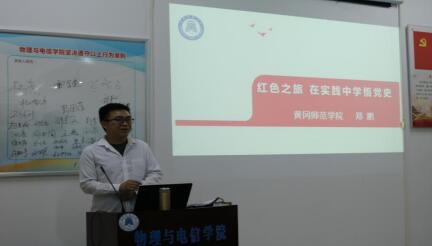 2021年5月13日下午4点,根据《黄冈师范学院党史学习教育宣讲工作方案》的通知要求,物理与电信学院党总支邀请了理论专家宣讲团成员郑鹏博士在我院会议室为党员教师进行党史学习教育宣讲。