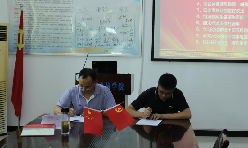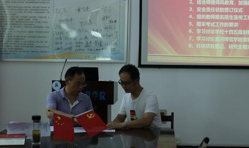 实验室管理人员及各学科实验室代表上台签订了实验室安全责任状。