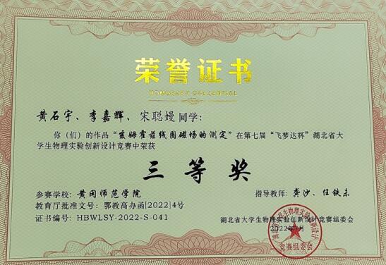 7月11日-13日,第七届“飞梦达杯”湖北省大学生物理实验创新设计竞赛在武汉工程大学邮电与信息工程学院落下帷幕,我校物理与电信学院四支代表队参赛,获一等奖1项,三等奖1项,优胜奖2项。