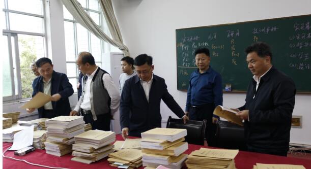 学院负责人汇报了师范专业认证工作,校领导实地察看了学院的各种教学材料的准备情况。