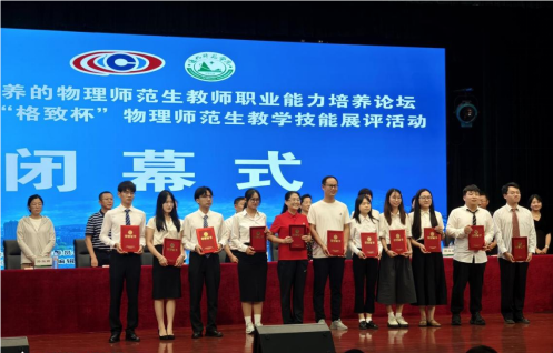 通过层层选拔,我校有4名物理教育硕士研究生和5名本科生参加了线下比赛,经过紧张激烈的比赛,获奖19项,其中优秀组织1项,优秀指导老师4项,研究生本科生教学技能比赛一等奖4项,二等奖4项,三等奖1项。研究生本科生教育教学论文二等奖4项,三等奖1项创造了我校参加该项活动最好成绩。