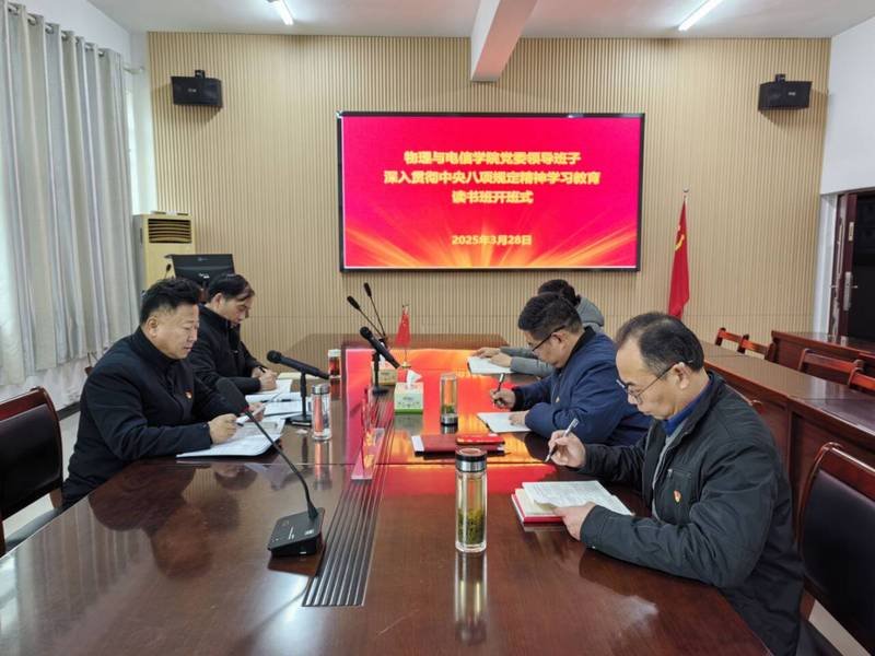 3月28日,物理与电信学院党委领导班子举行深入贯彻中央八项规定精神学习教育读书班开班式。学院党委书记卢年桥主持会议并讲话。全体党委领导班子成员参加会议。