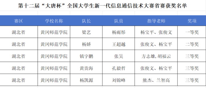 我院学子在第十二届“大唐杯”全国大学生新一代信息通信技术大赛省赛中荣获一等奖