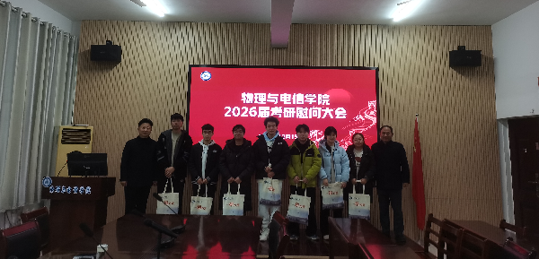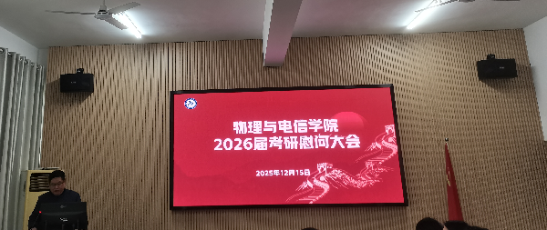 为鼓舞考研学子士气,缓解备考压力,传递学院深切关怀,2025年12月15日下午4点,物理与电信学院在物电楼205举办考研学子慰问大会。学院党委书记卢年桥,院长兰智高,党委副书记王世伟,辅导员江俊新老师、胡乐老师、徐亮亮老师与备战考研的学子欢聚一堂,在紧张冲刺阶段为考研学子送上温暖祝福与坚实支持。现场气氛温馨热烈,暖意融融。